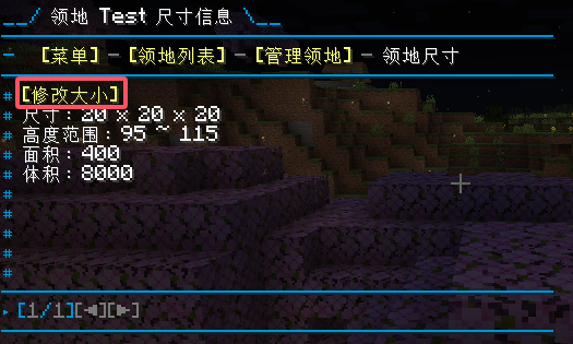 打开对应领地的管理页面,点击 【领地尺寸】,可以查看当前领地的尺寸信息: