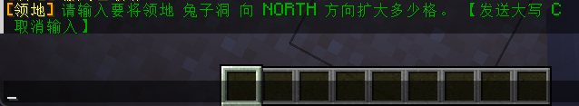 例如我现在希望将领地向北扩张10格,那么点击 北(Z-)【扩张】 随后在聊天栏中输入要扩张的格数 10: