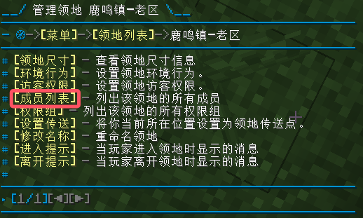 在领地的管理界面点击【成员列表】,即可查看当前领地的所有成员: