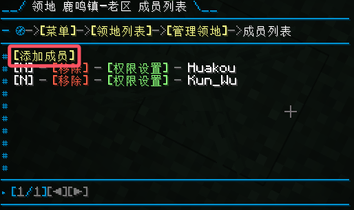 会出现所有登陆过服务器的玩家名称,点击玩家名称即可将其添加为领地成员: